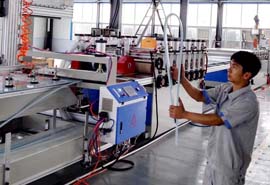 公司致力于PVC結(jié)皮發(fā)泡板設(shè)備的研發(fā)制造,具備多個(gè)系列多種型號(hào)的設(shè)備供不同用戶(hù)選擇。